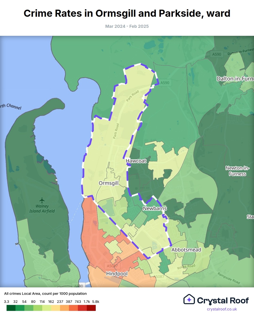 Ormsgill and Parkside, (ward) includes areas with the following crime ratings (see map):