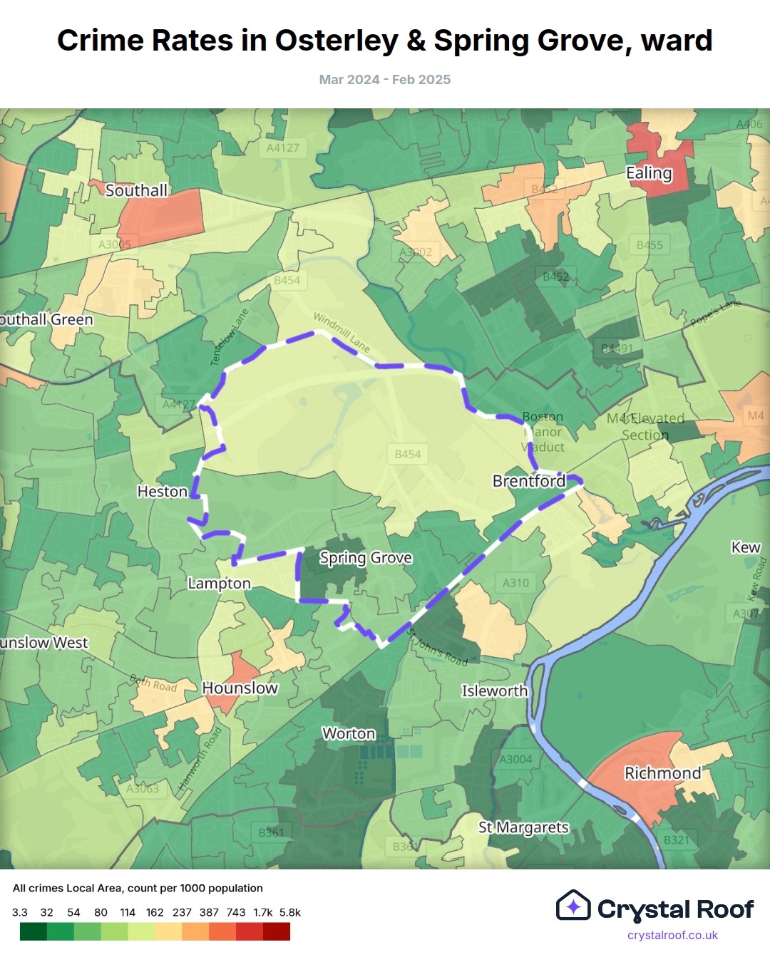 Osterley & Spring Grove, (ward) includes areas with the following crime ratings (see map):
