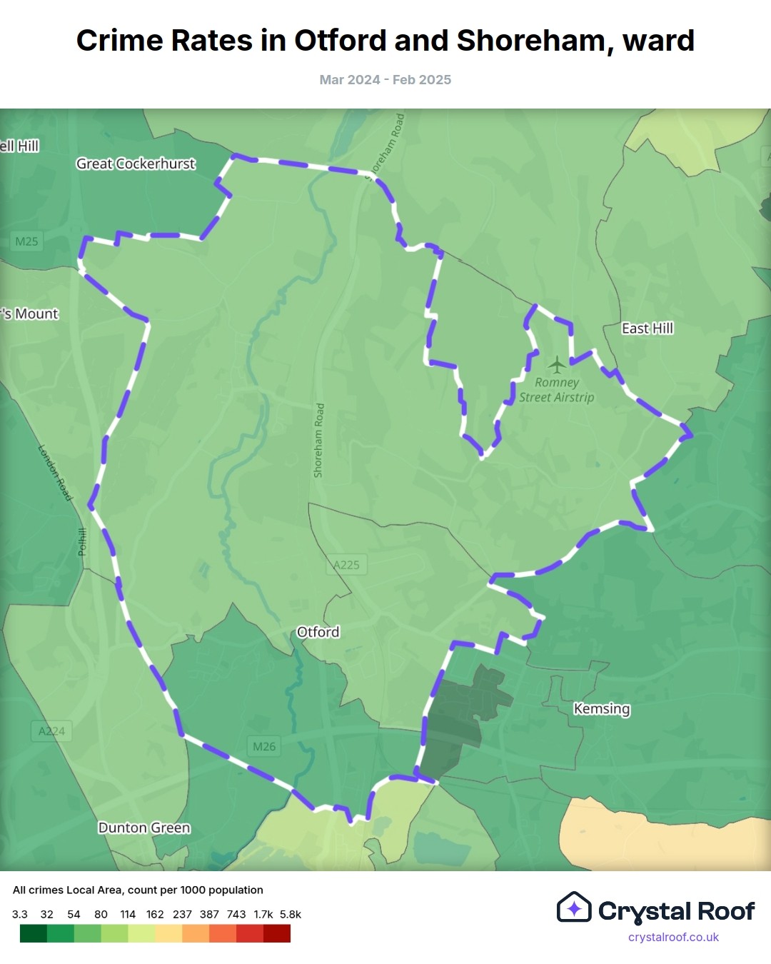 Otford and Shoreham, (ward) includes areas with the following crime ratings (see map):