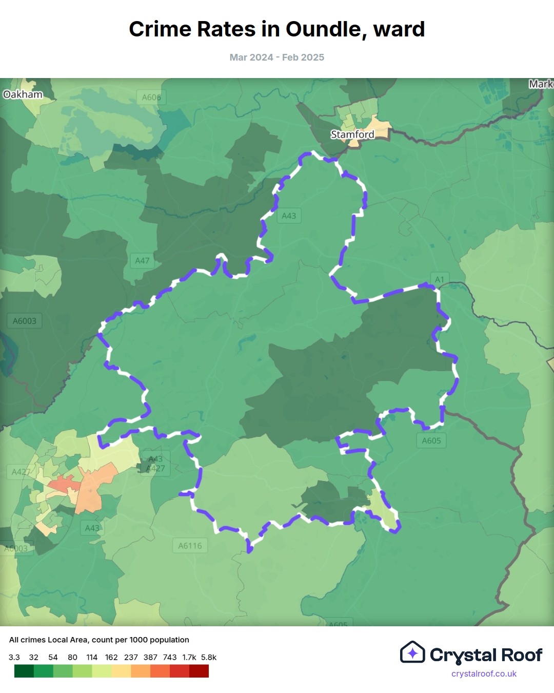 Oundle, (ward) includes areas with the following crime ratings (see map):