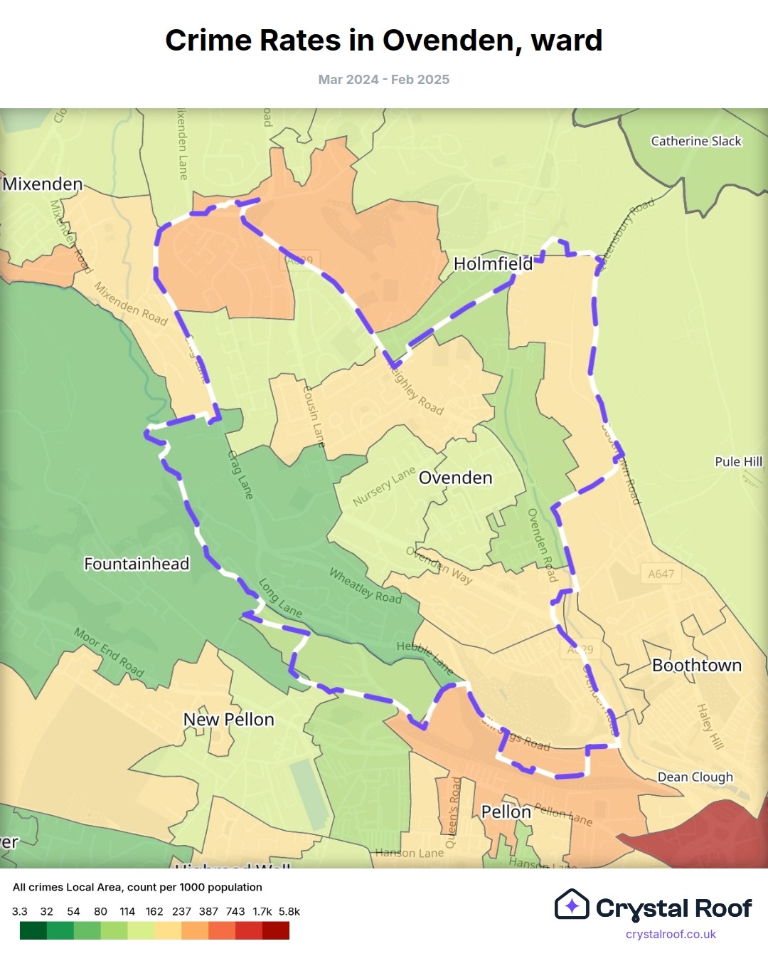 Ovenden, (ward) includes areas with the following crime ratings (see map):