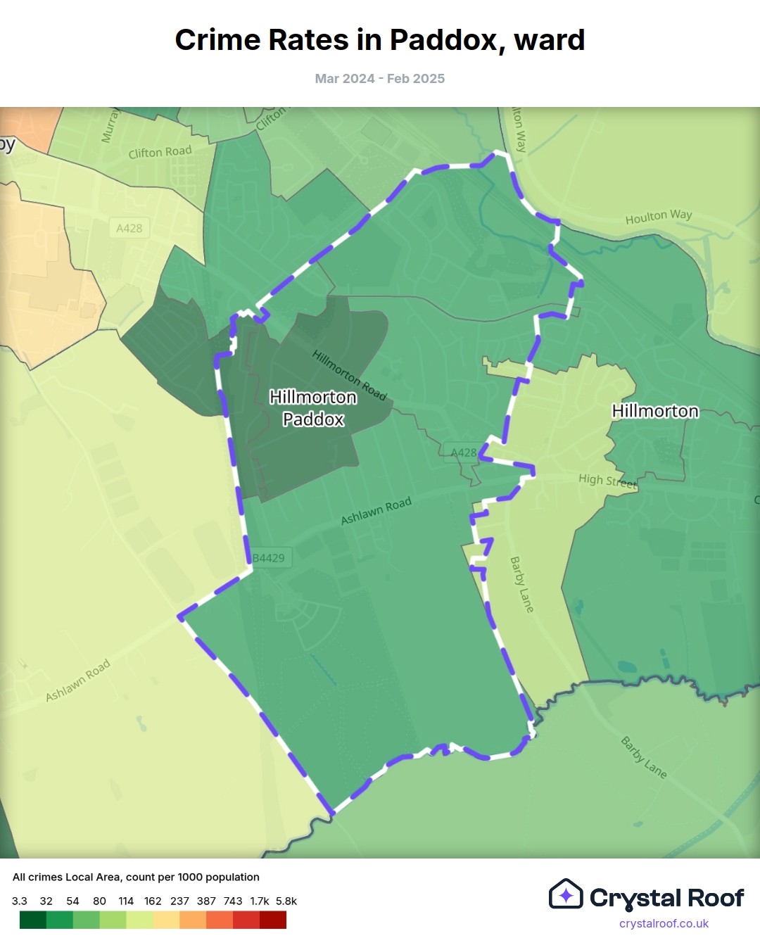 Paddox, (ward) includes areas with the following crime ratings (see map):