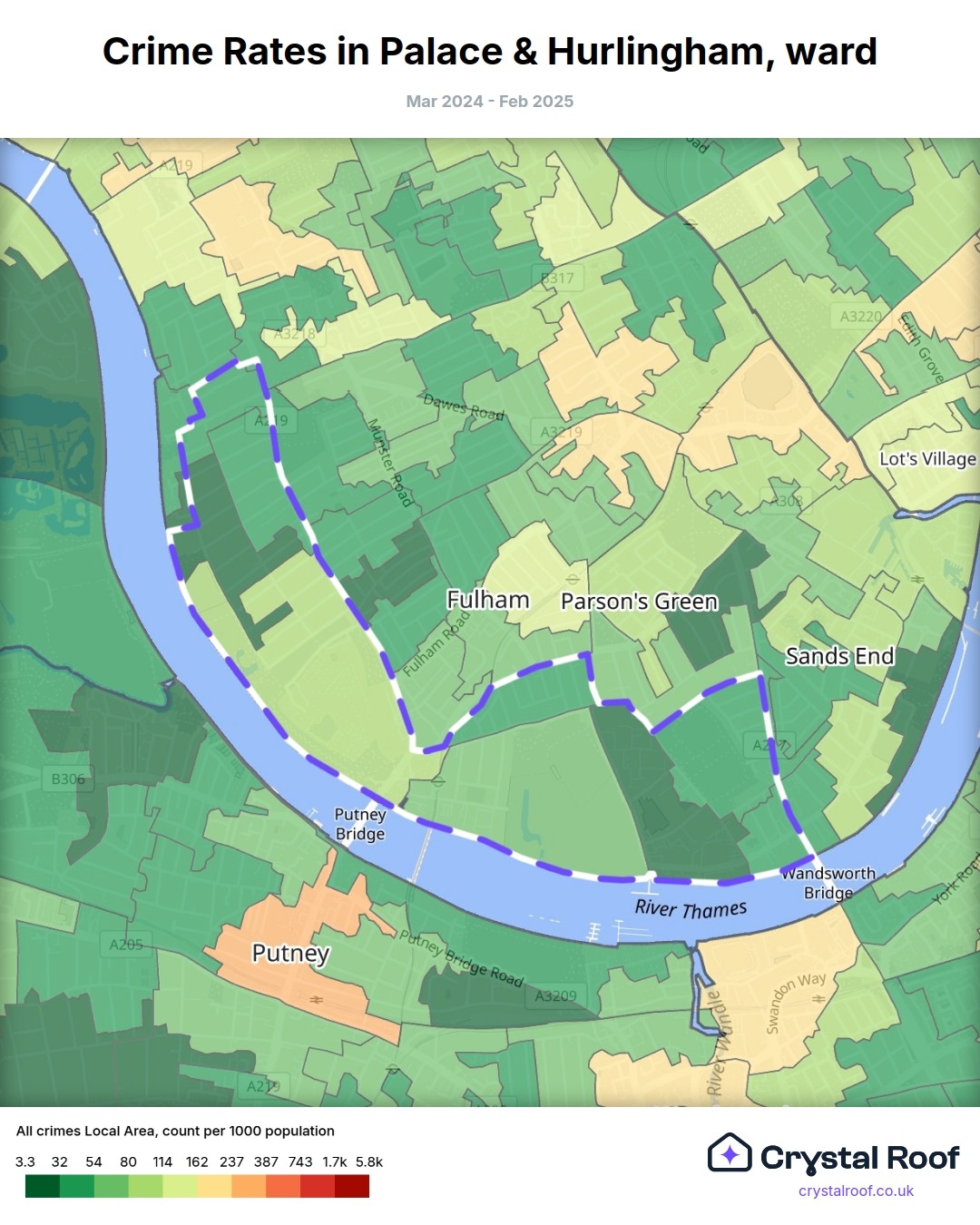 Palace & Hurlingham, (ward) includes areas with the following crime ratings (see map):