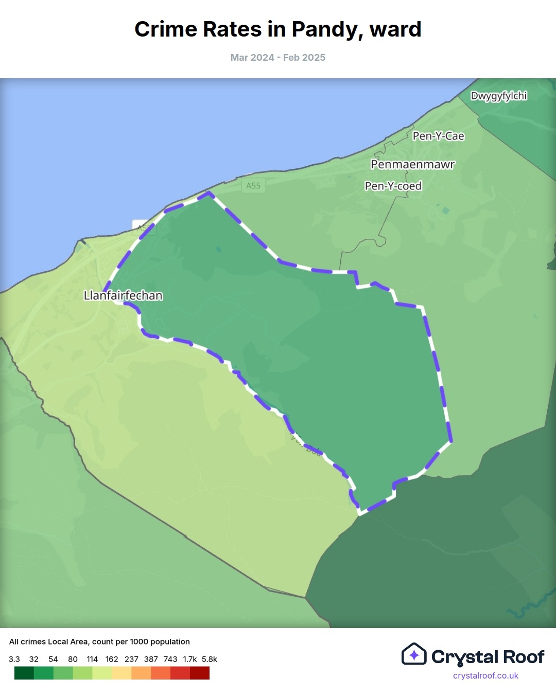 Pandy, (ward) includes areas with the following crime ratings (see map):