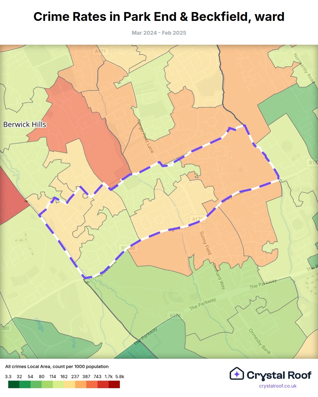 Park End & Beckfield, (ward) includes areas with the following crime ratings (see map):