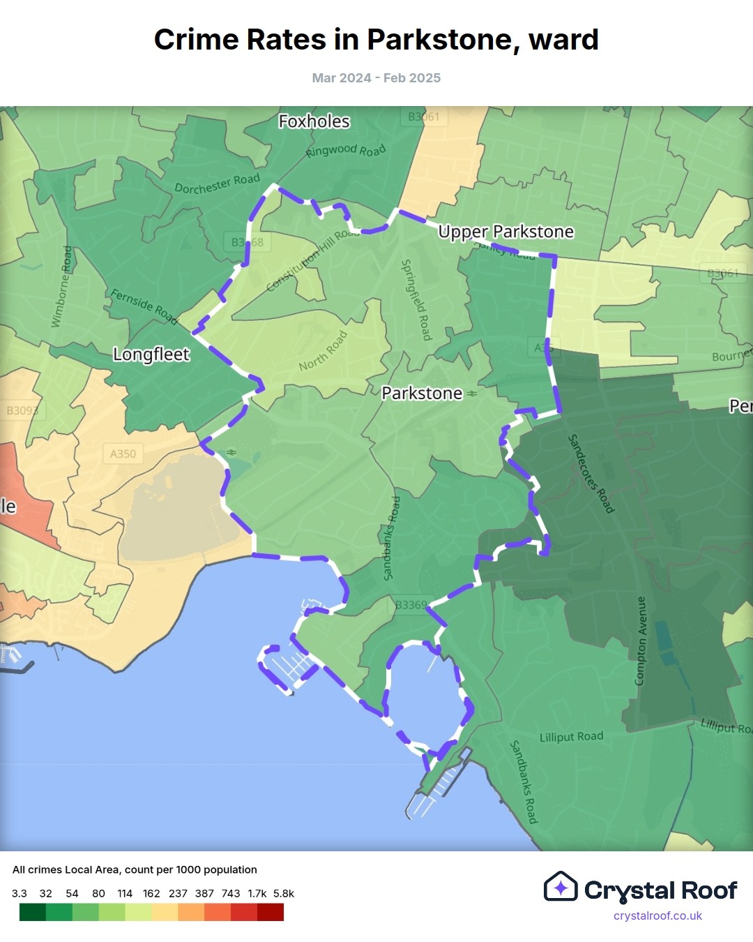 Parkstone, (ward) includes areas with the following crime ratings (see map):