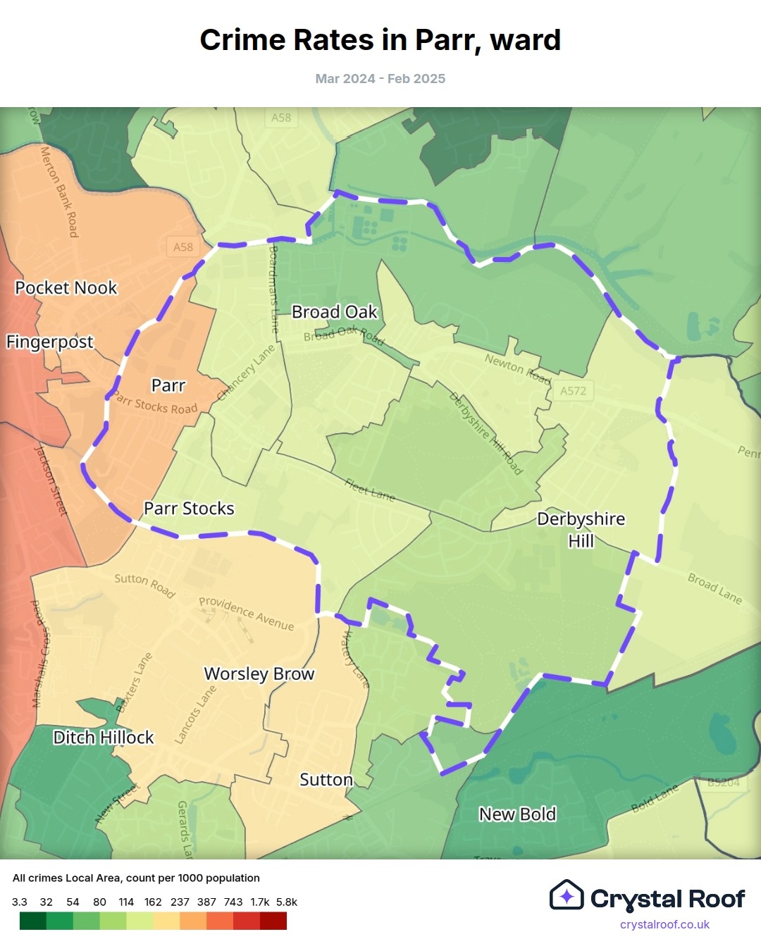 Parr, (ward) includes areas with the following crime ratings (see map):