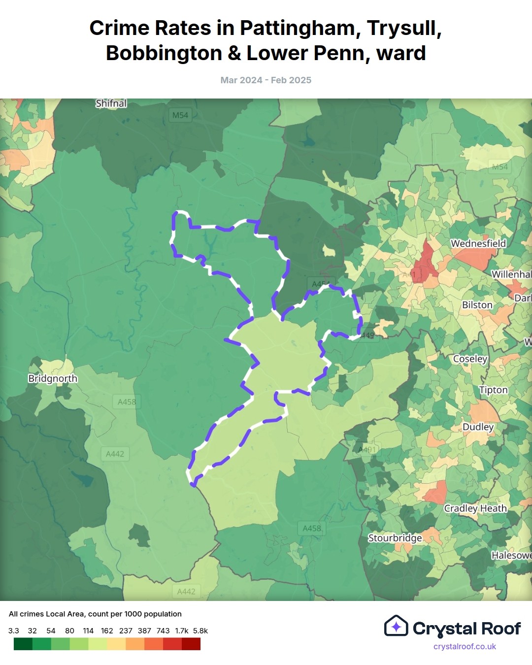 Pattingham, Trysull, Bobbington & Lower Penn, (ward) includes areas with the following crime ratings (see map):