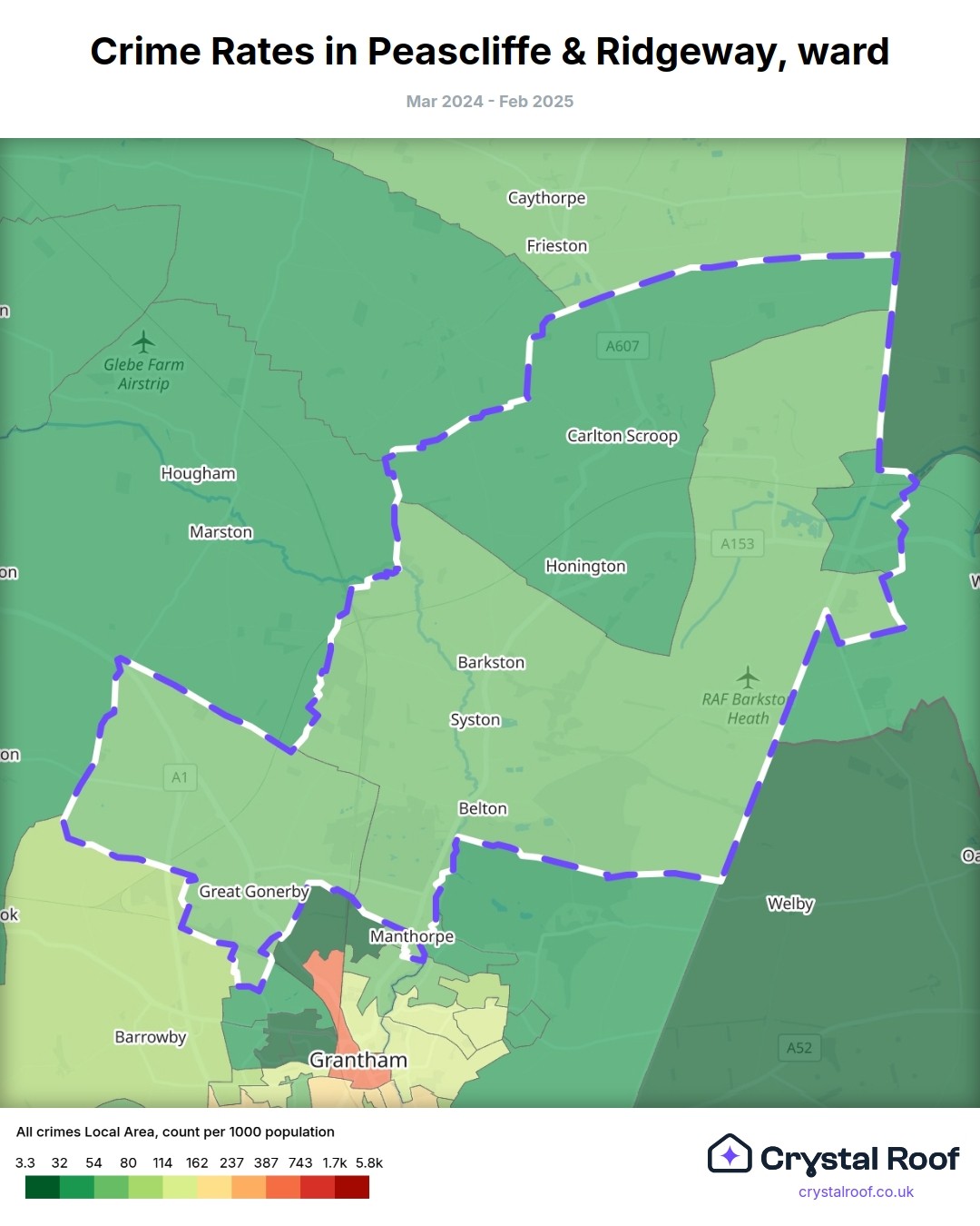 Peascliffe & Ridgeway, (ward) includes areas with the following crime ratings (see map):