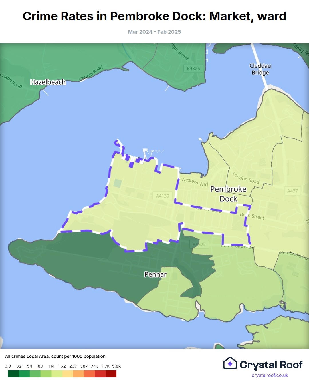 Pembroke Dock: Market, (ward) includes areas with the following crime ratings (see map):
