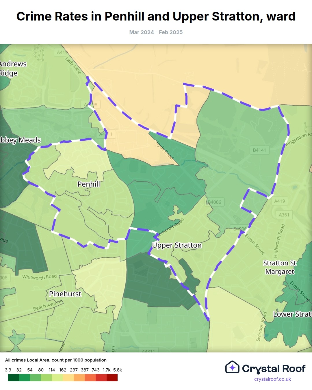 Penhill and Upper Stratton, (ward) includes areas with the following crime ratings (see map):