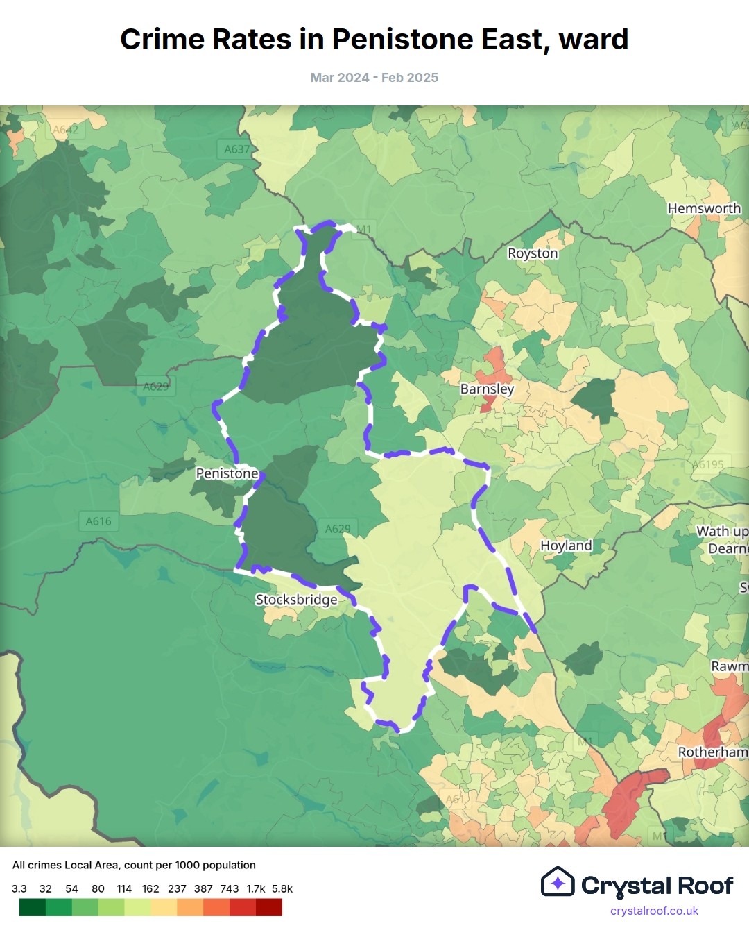 Penistone East, (ward) includes areas with the following crime ratings (see map):