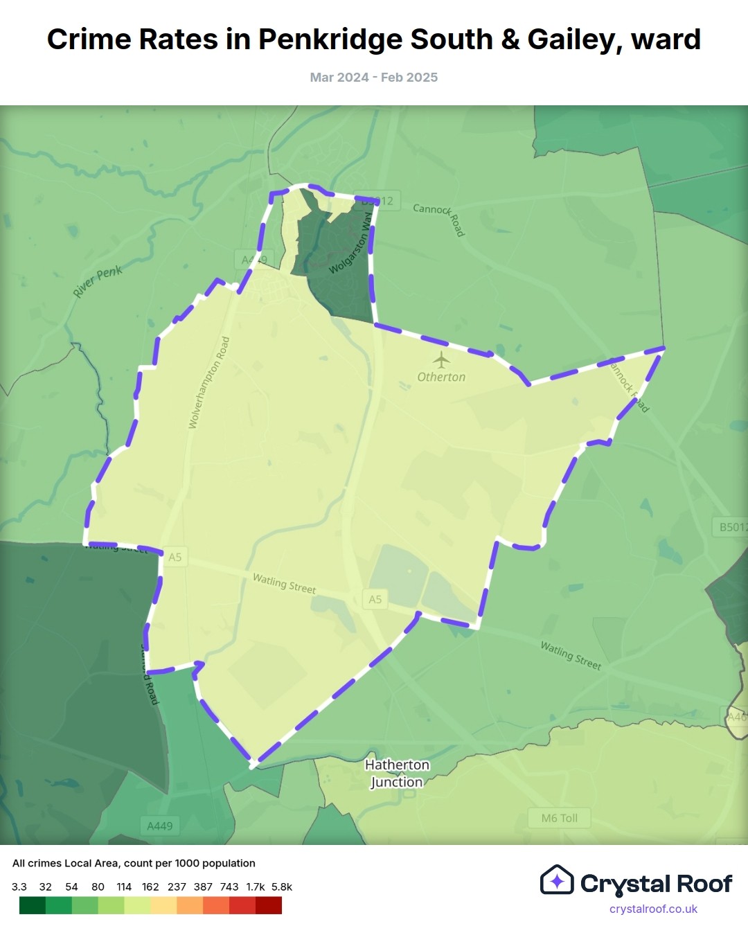 Penkridge South & Gailey, (ward) includes areas with the following crime ratings (see map):