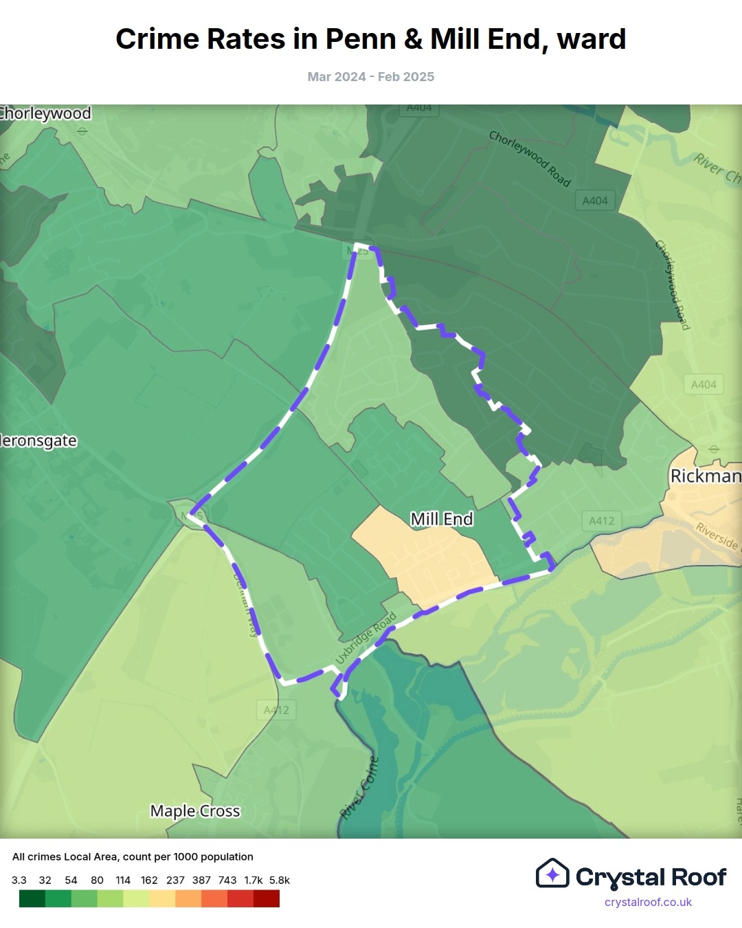 Penn & Mill End, (ward) includes areas with the following crime ratings (see map):