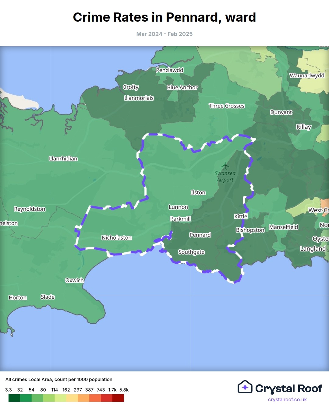 Pennard, (ward) includes areas with the following crime ratings (see map):