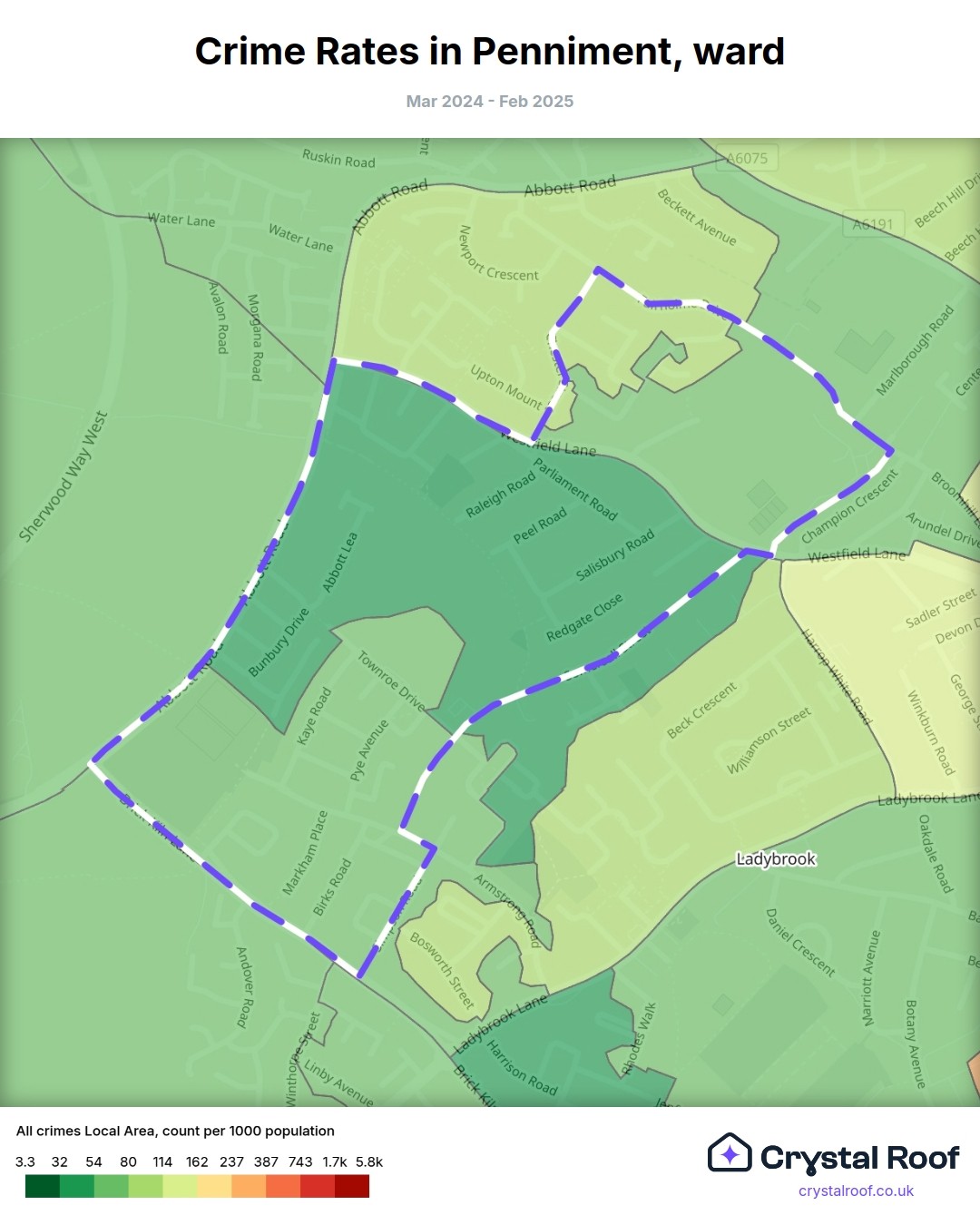 Penniment, (ward) includes areas with the following crime ratings (see map):