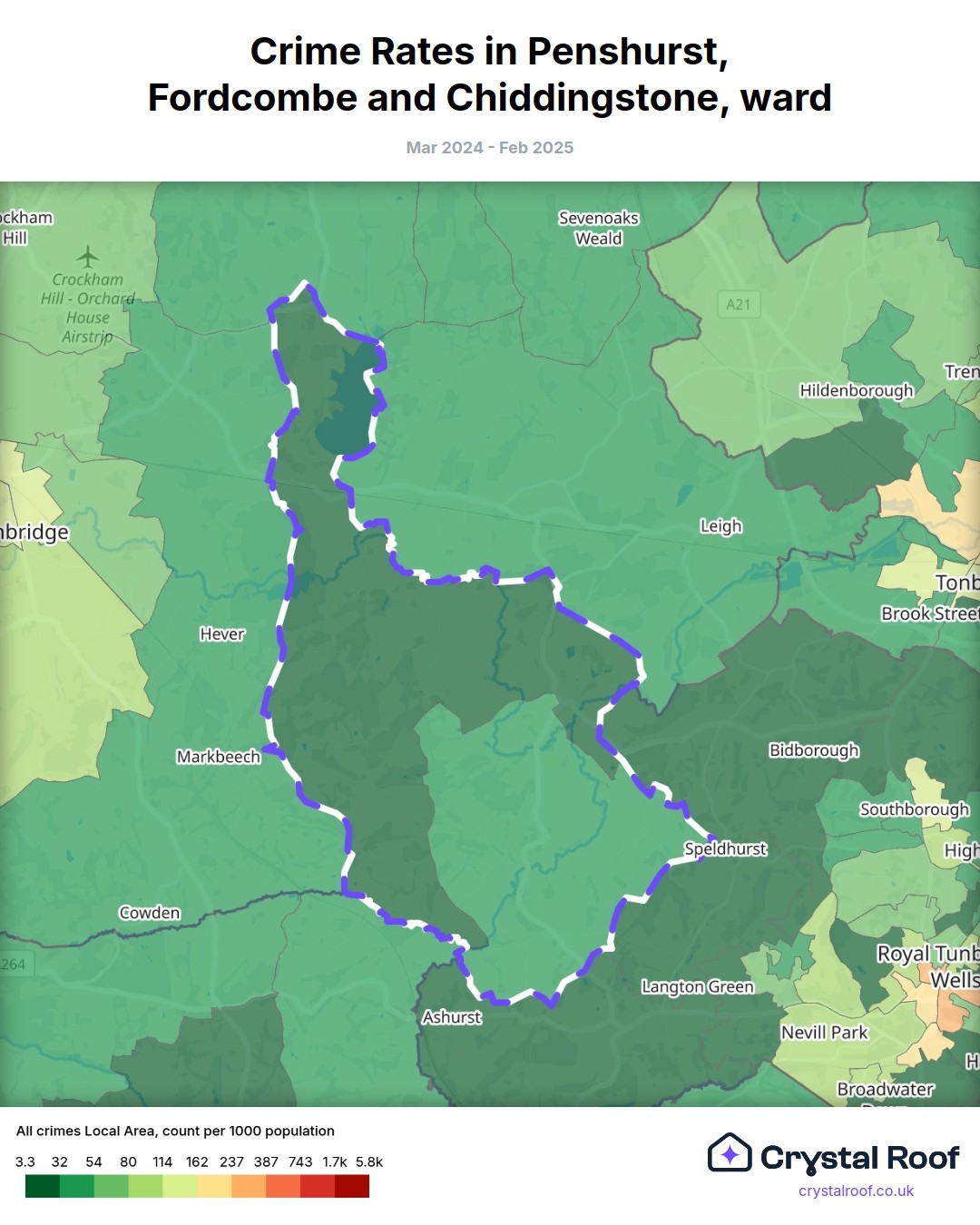 Penshurst, Fordcombe and Chiddingstone, (ward) includes areas with the following crime ratings (see map):