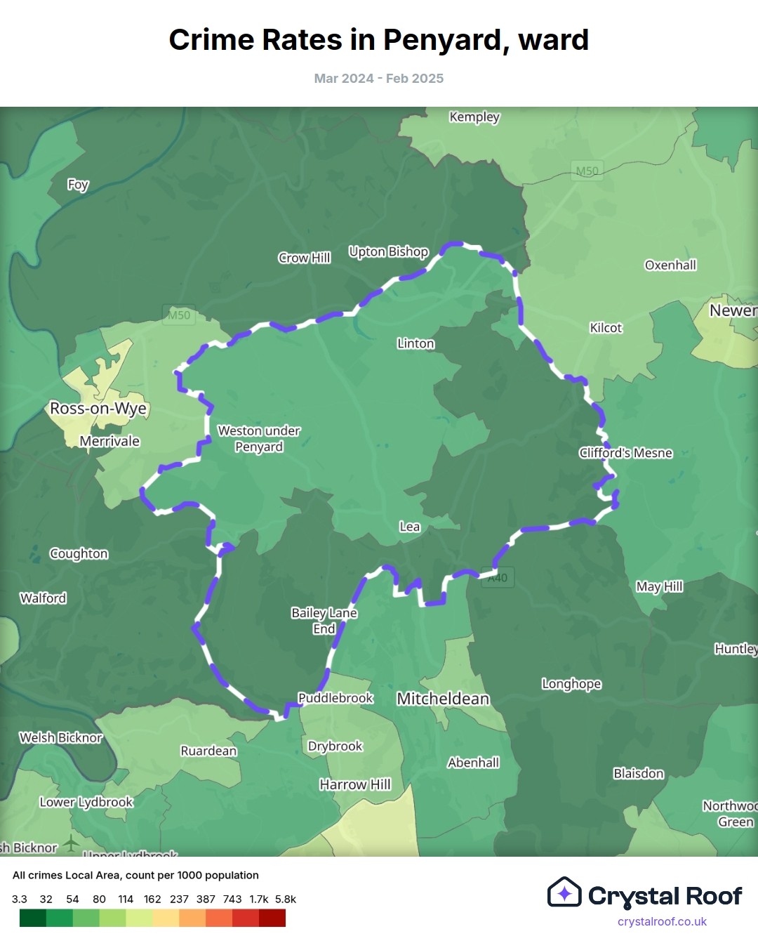 Penyard, (ward) includes areas with the following crime ratings (see map):