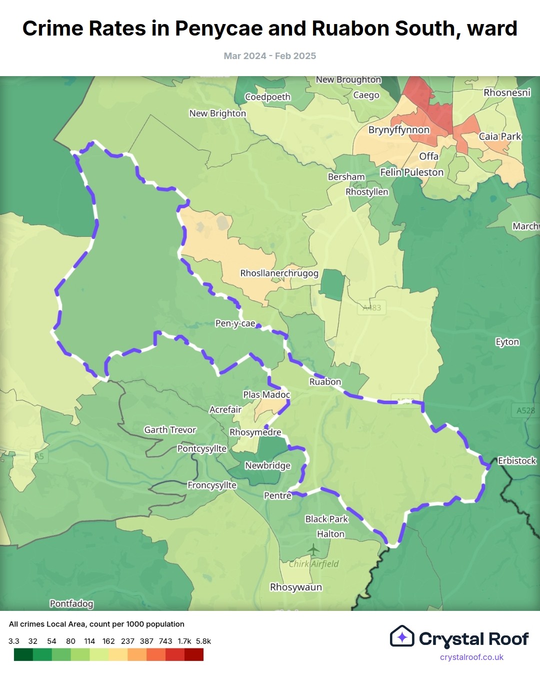 Penycae and Ruabon South, (ward) includes areas with the following crime ratings (see map):
