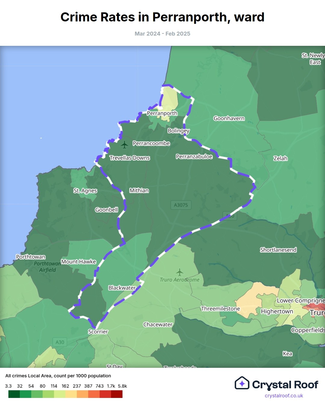 Perranporth, (ward) includes areas with the following crime ratings (see map):