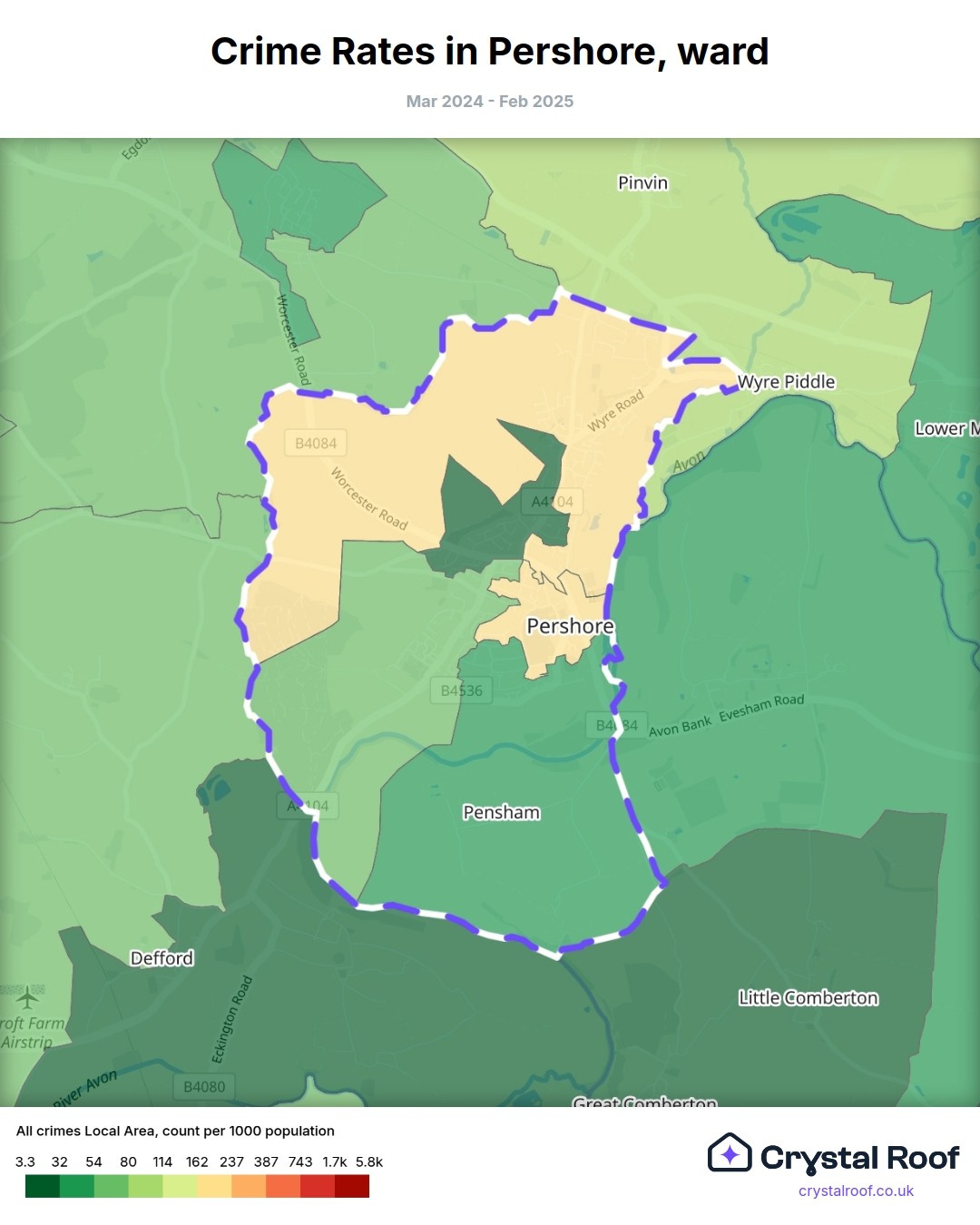 Pershore, (ward) includes areas with the following crime ratings (see map):