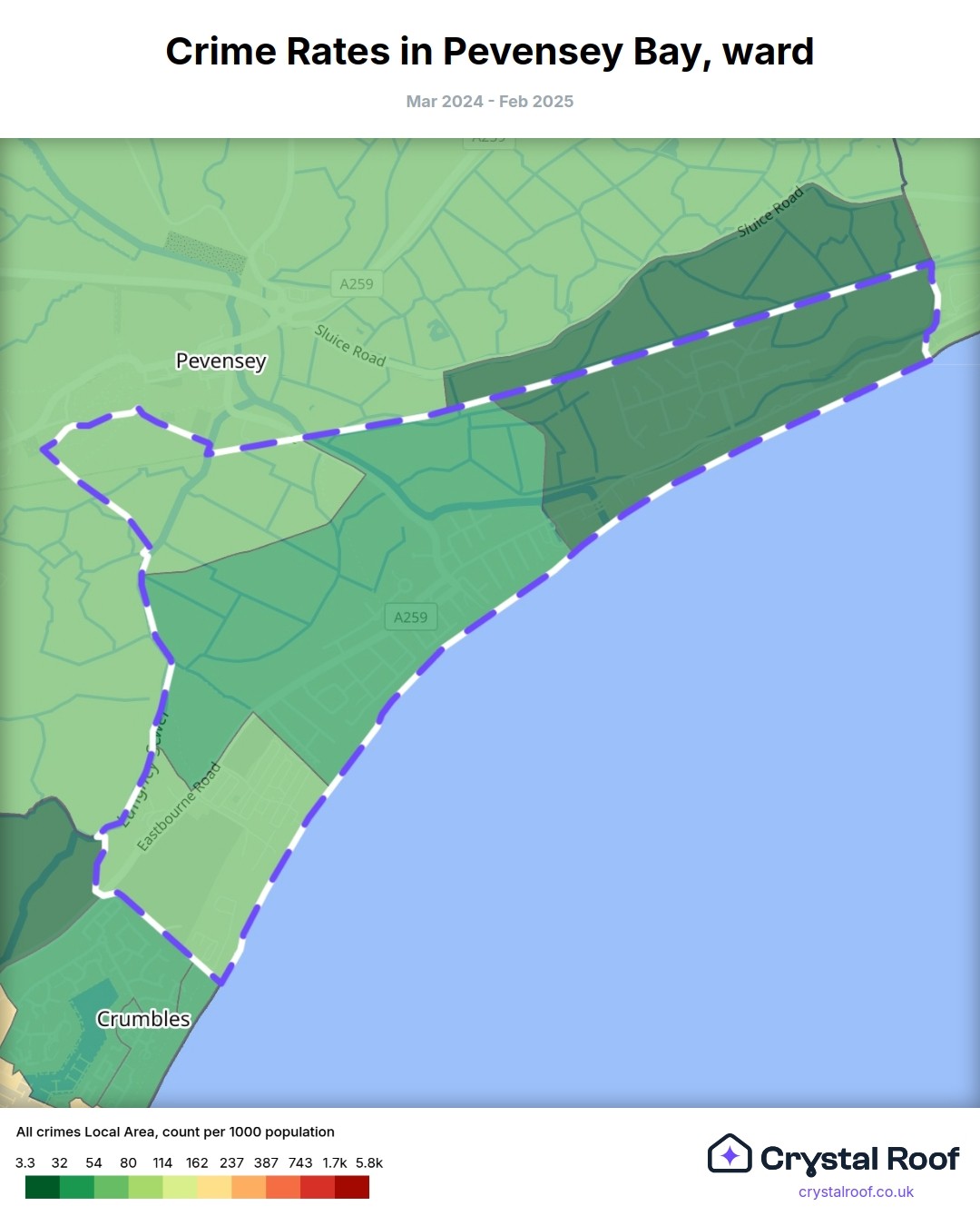 Pevensey Bay, (ward) includes areas with the following crime ratings (see map):
