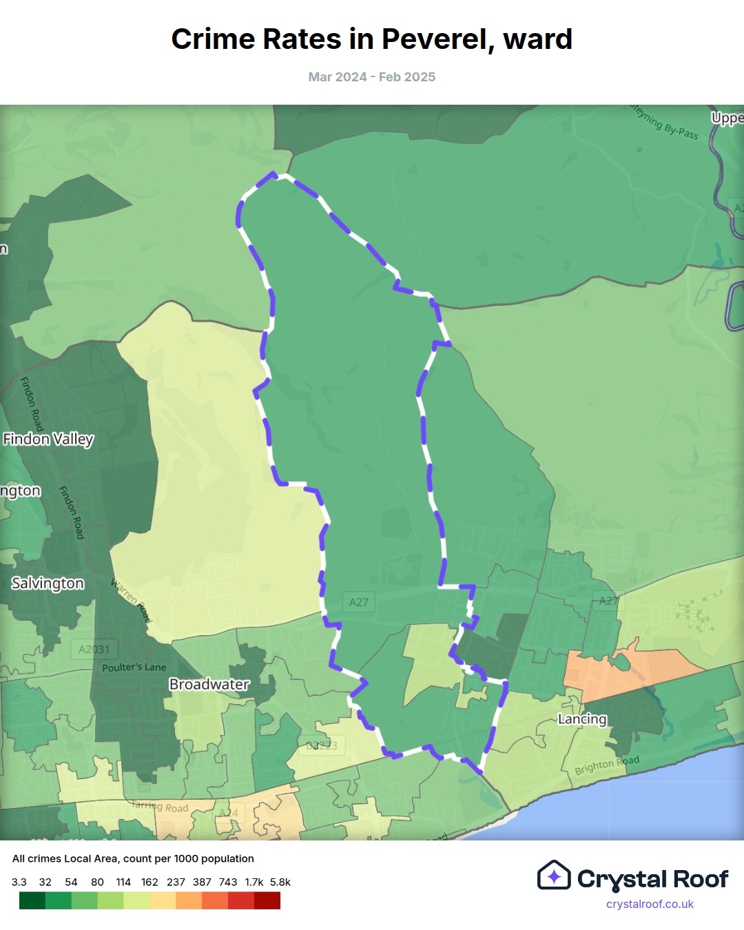 Peverel, (ward) includes areas with the following crime ratings (see map):