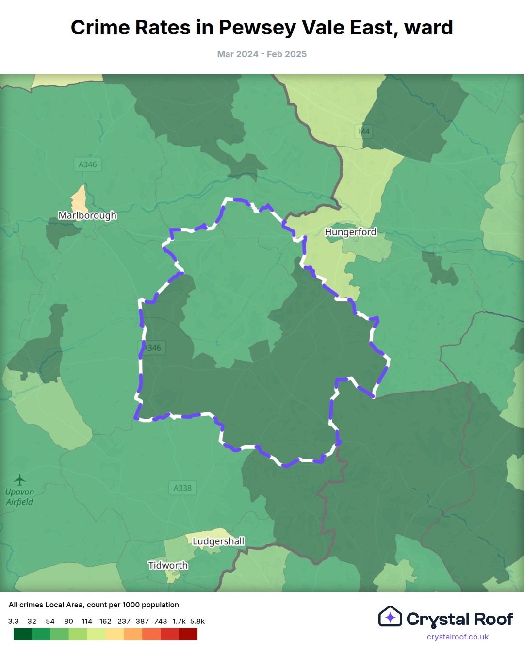 Pewsey Vale East, (ward) includes areas with the following crime ratings (see map):