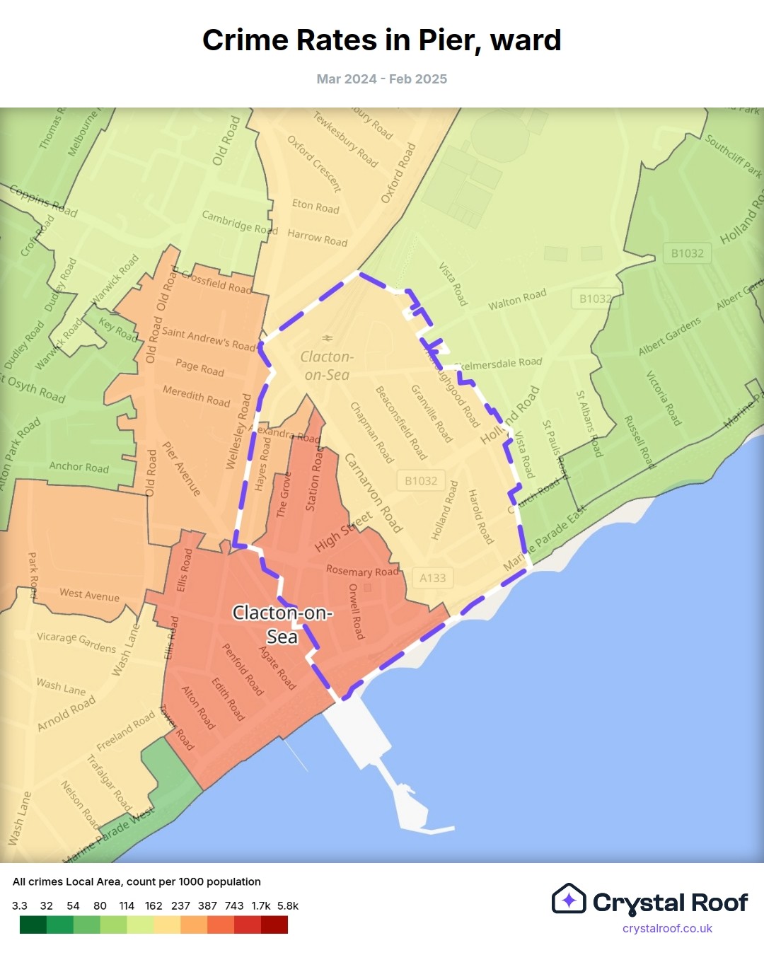 Pier, (ward) includes areas with the following crime ratings (see map):
