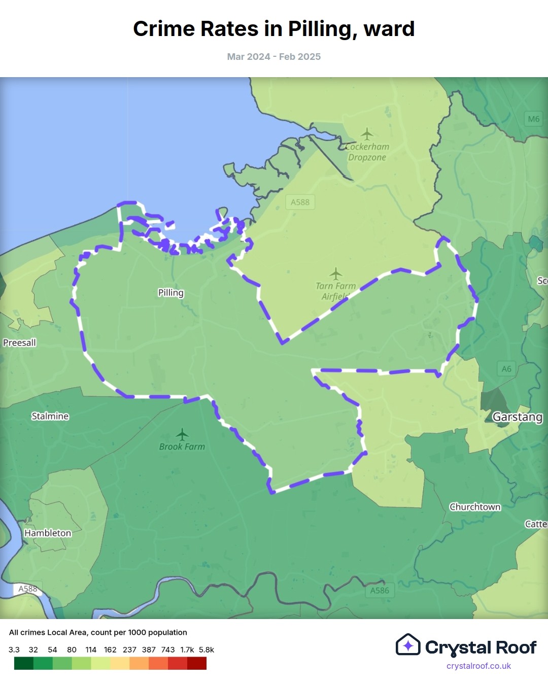 Pilling, (ward) includes areas with the following crime ratings (see map):