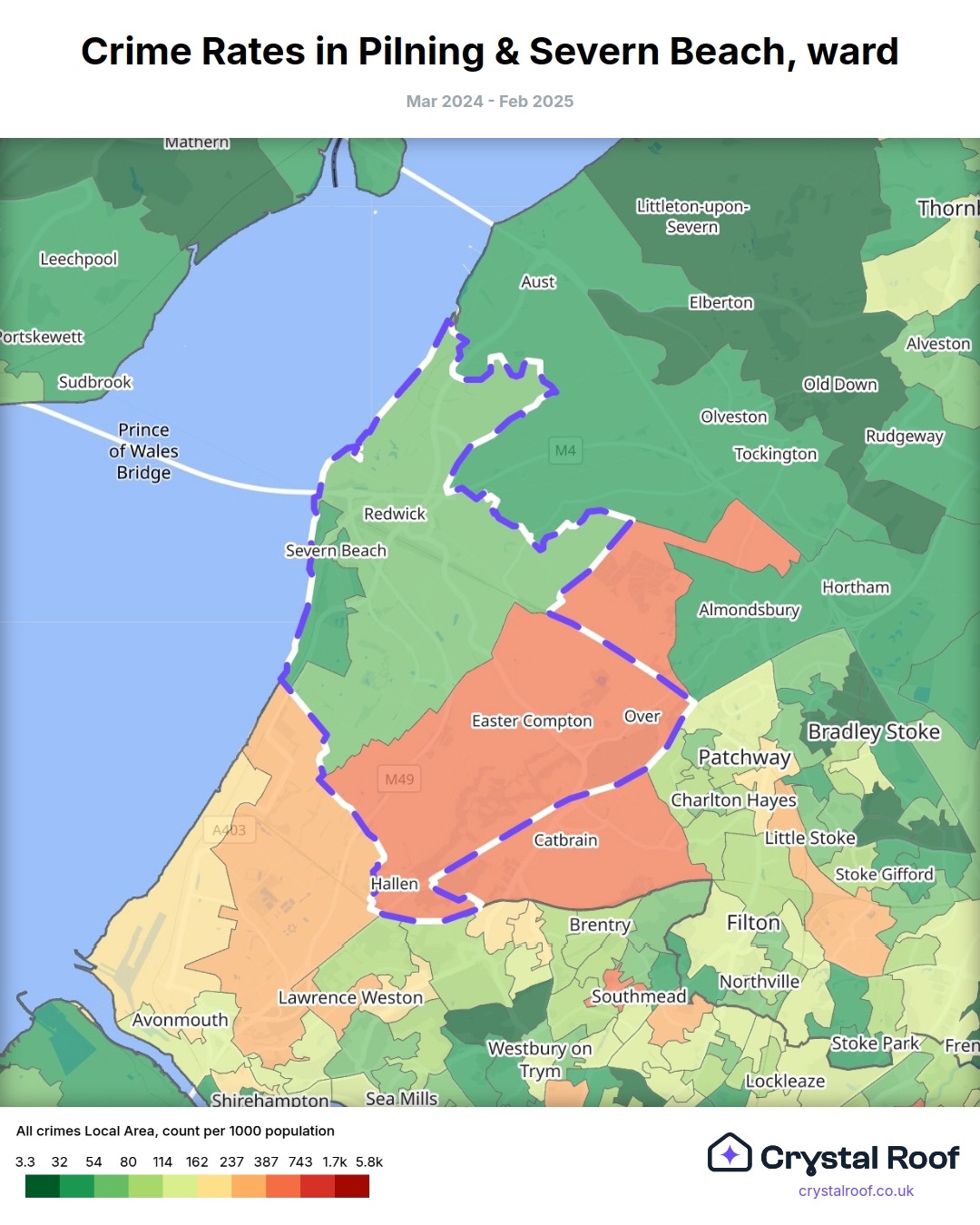Pilning & Severn Beach, (ward) includes areas with the following crime ratings (see map):