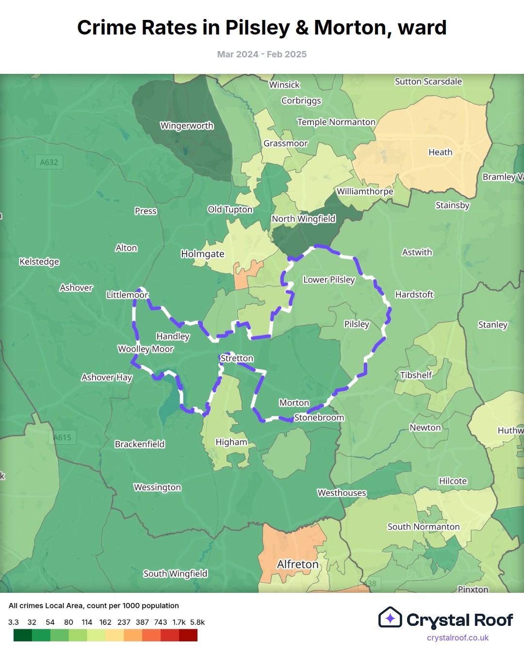 Pilsley & Morton, (ward) includes areas with the following crime ratings (see map):