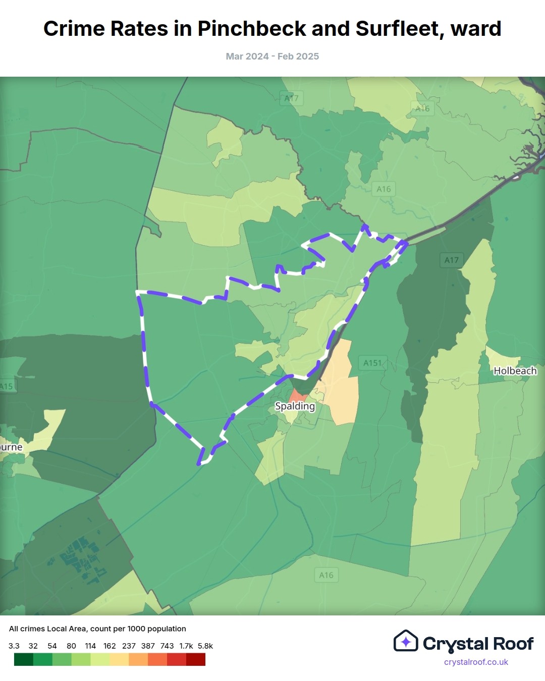 Pinchbeck and Surfleet, (ward) includes areas with the following crime ratings (see map):