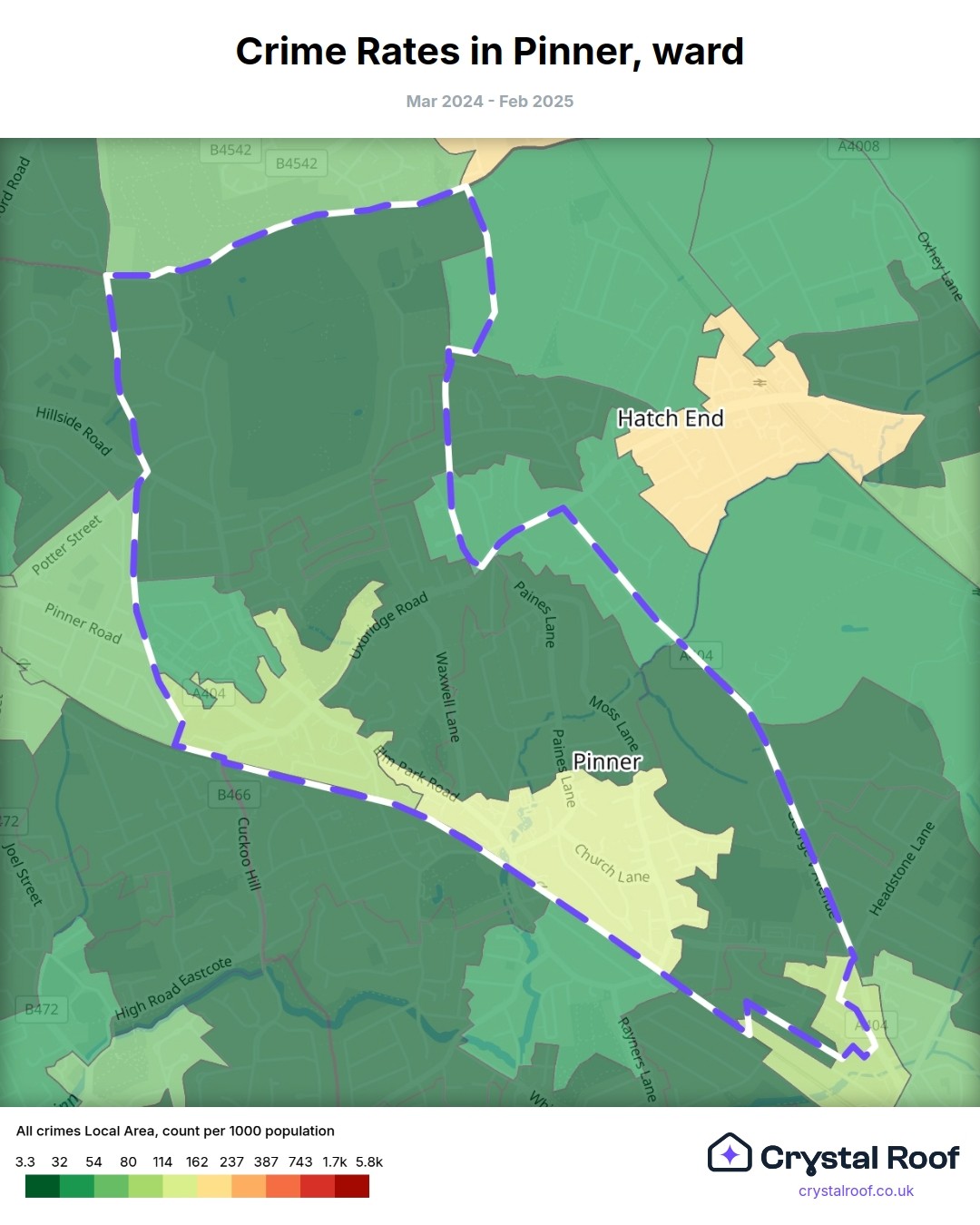 Pinner, (ward) includes areas with the following crime ratings (see map):
