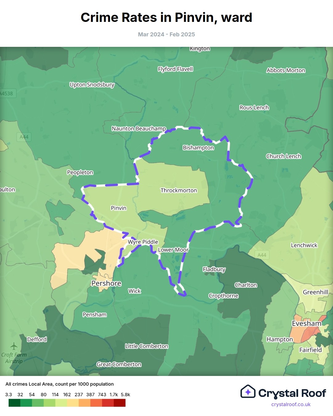 Pinvin, (ward) includes areas with the following crime ratings (see map):