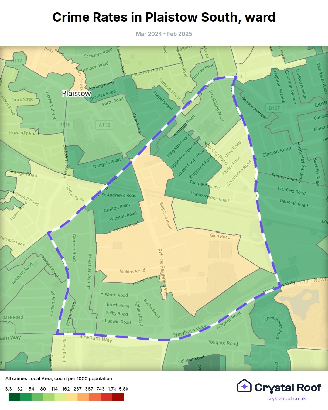 Plaistow South, (ward) includes areas with the following crime ratings (see map):