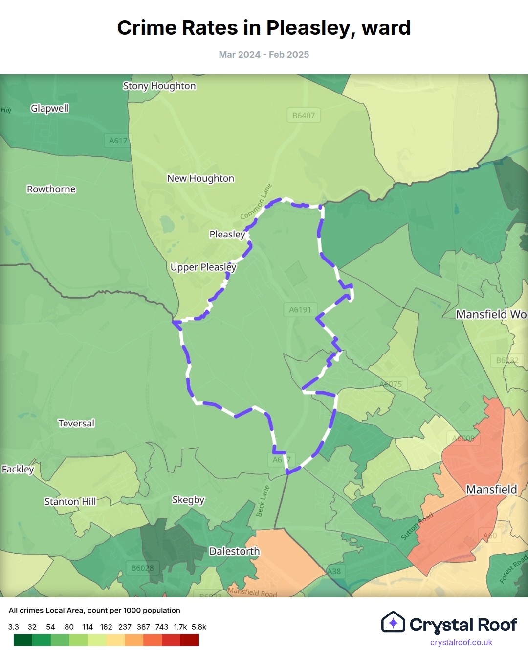 Pleasley, (ward) includes areas with the following crime ratings (see map):