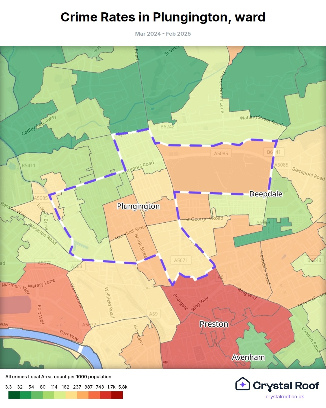 Plungington, (ward) includes areas with the following crime ratings (see map):