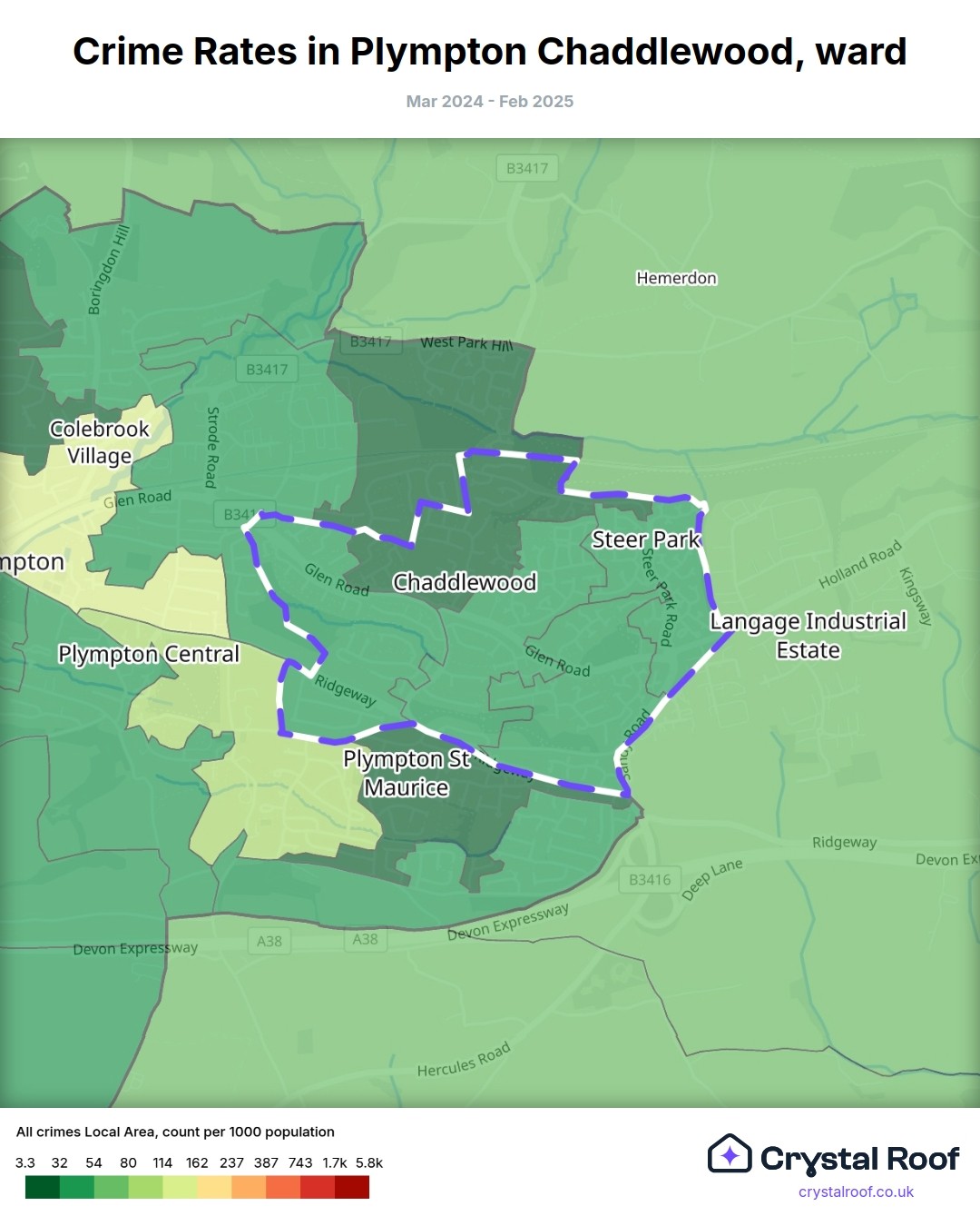 Plympton Chaddlewood, (ward) includes areas with the following crime ratings (see map):