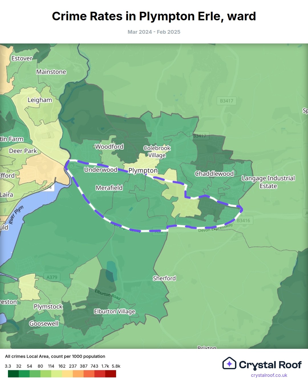 Plympton Erle, (ward) includes areas with the following crime ratings (see map):