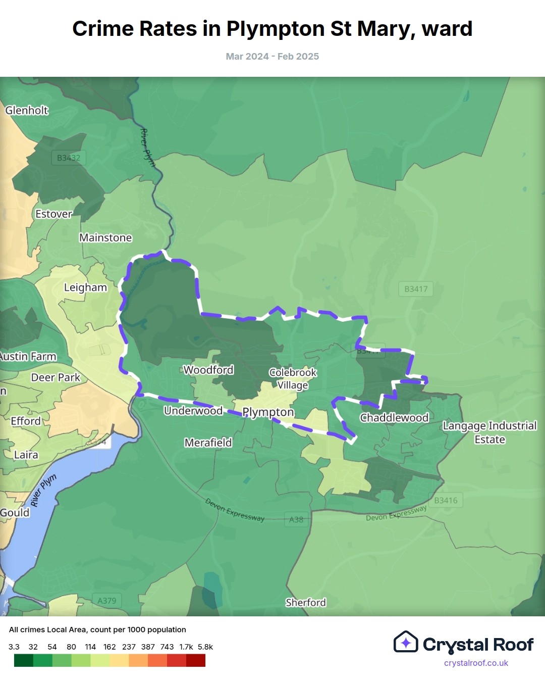 Plympton St Mary, (ward) includes areas with the following crime ratings (see map):