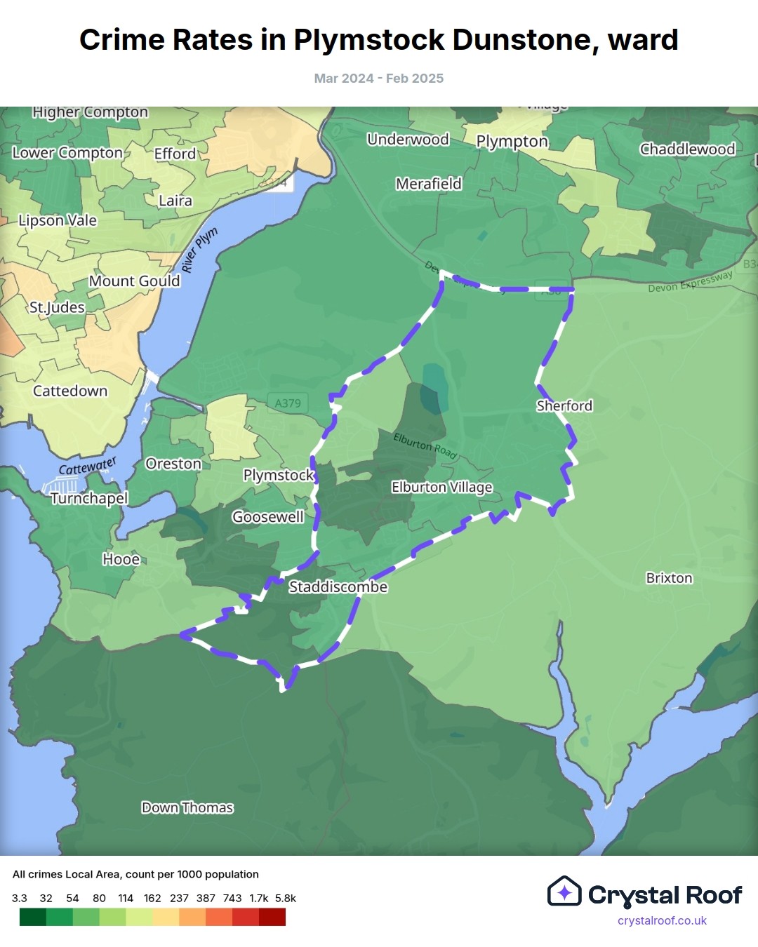 Plymstock Dunstone, (ward) includes areas with the following crime ratings (see map):