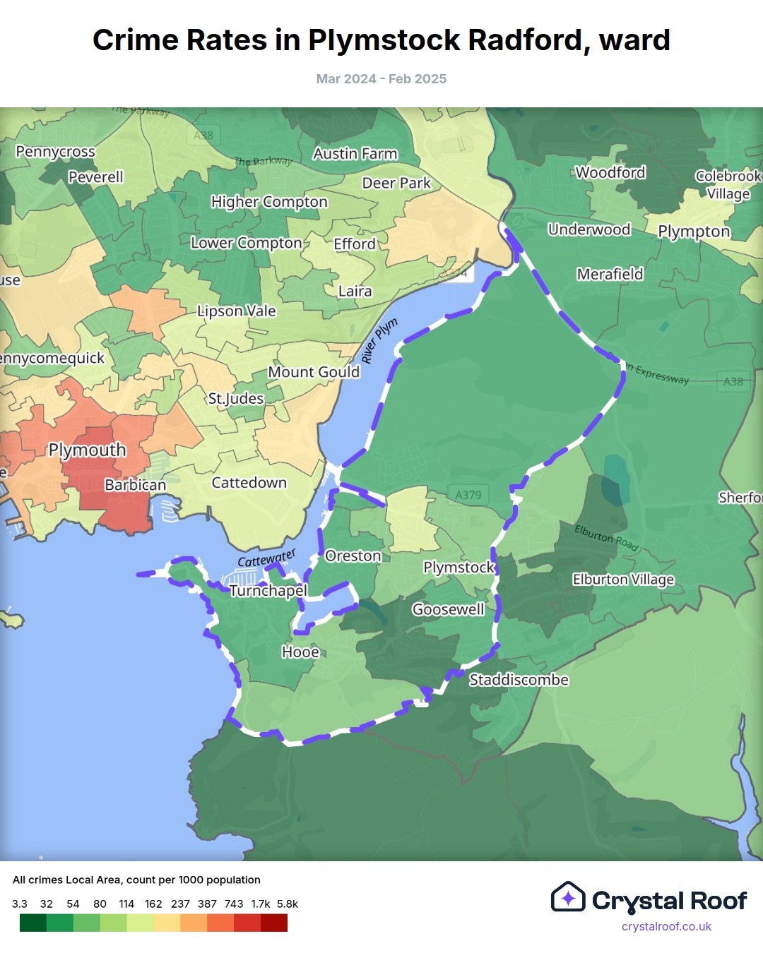 Plymstock Radford, (ward) includes areas with the following crime ratings (see map):