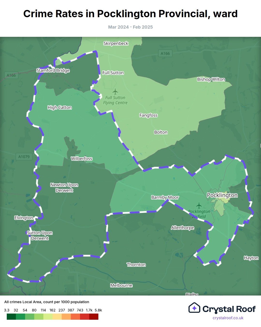Pocklington Provincial, (ward) includes areas with the following crime ratings (see map):