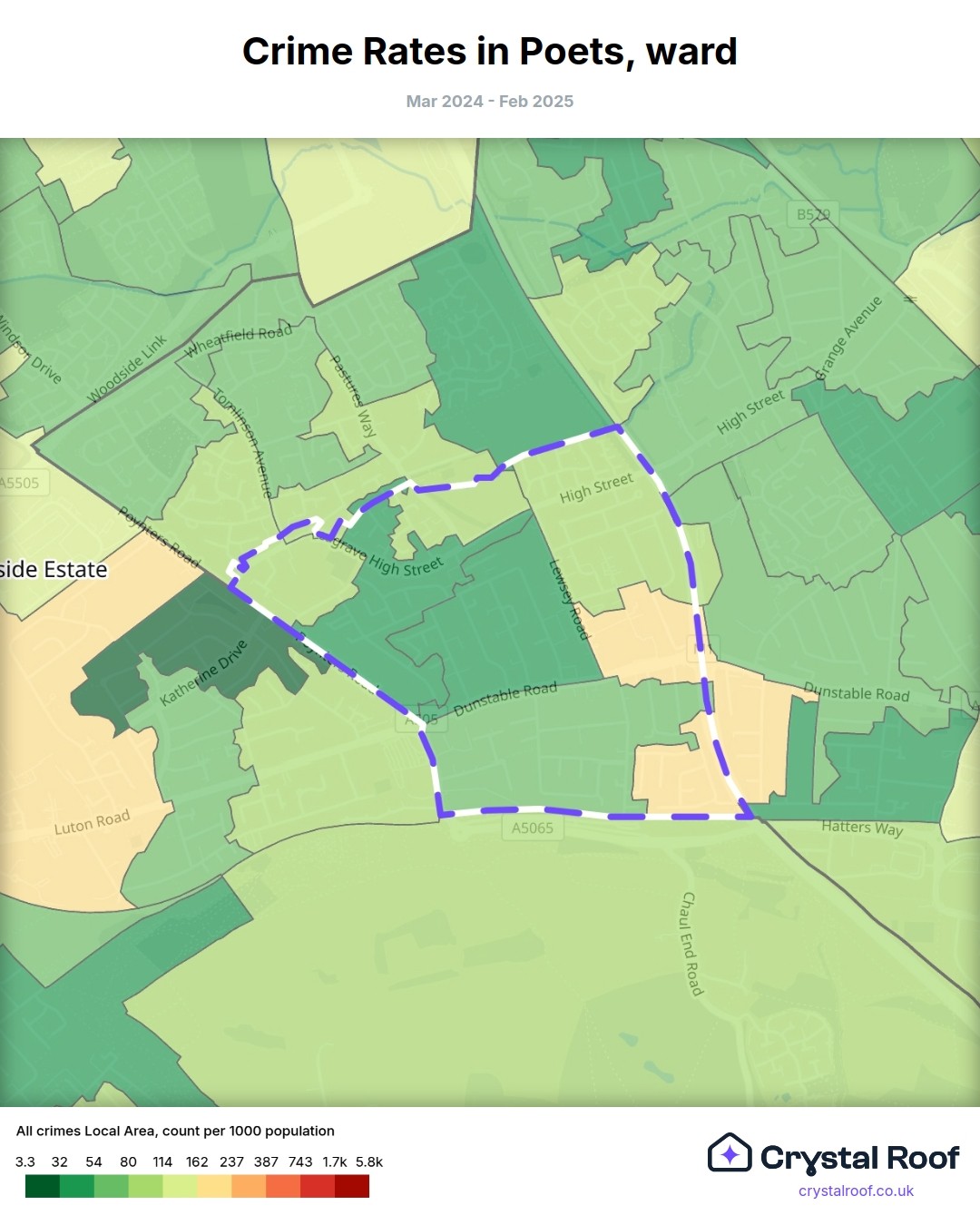 Poets, (ward) includes areas with the following crime ratings (see map):
