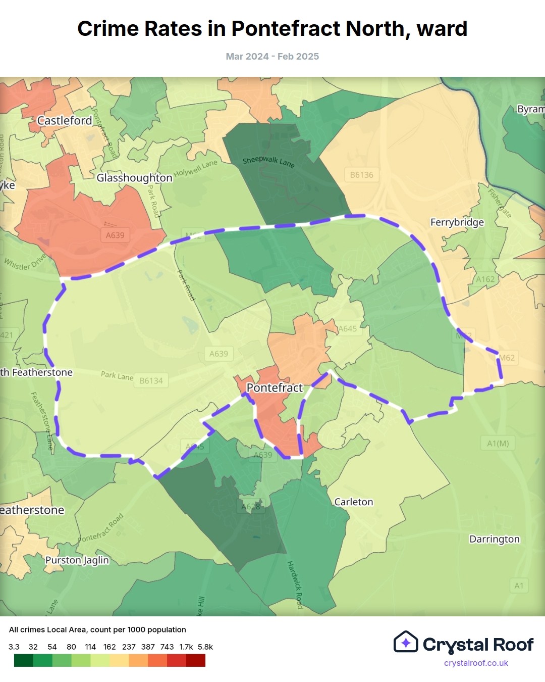 Pontefract North, (ward) includes areas with the following crime ratings (see map):