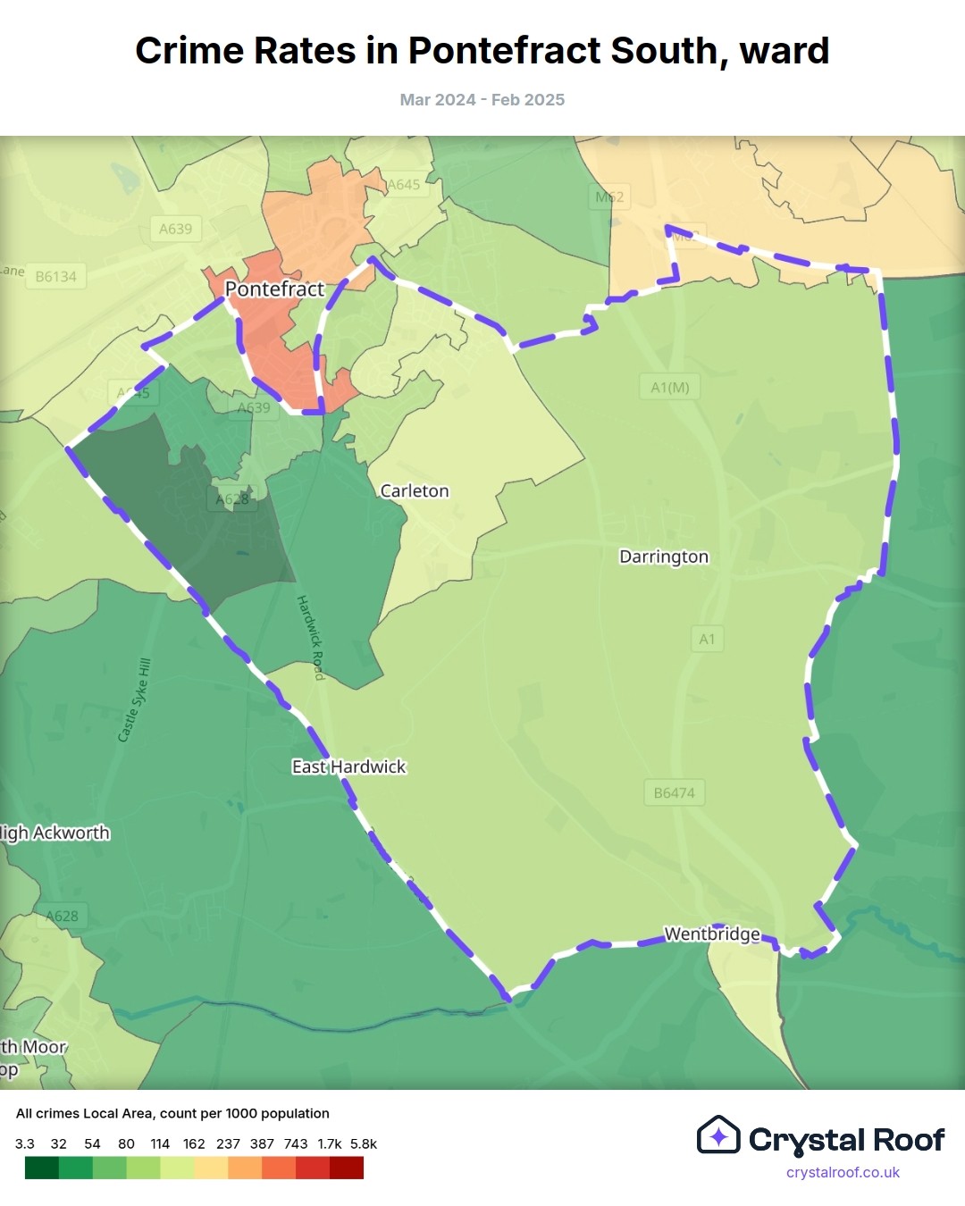 Pontefract South, (ward) includes areas with the following crime ratings (see map):