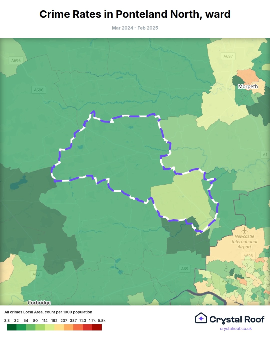 Ponteland North, (ward) includes areas with the following crime ratings (see map):