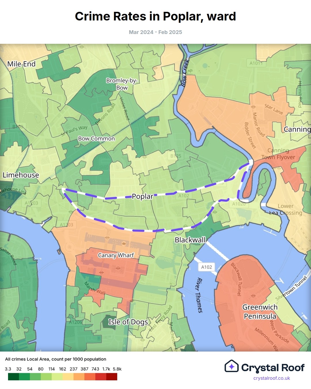 Poplar, (ward) includes areas with the following crime ratings (see map):