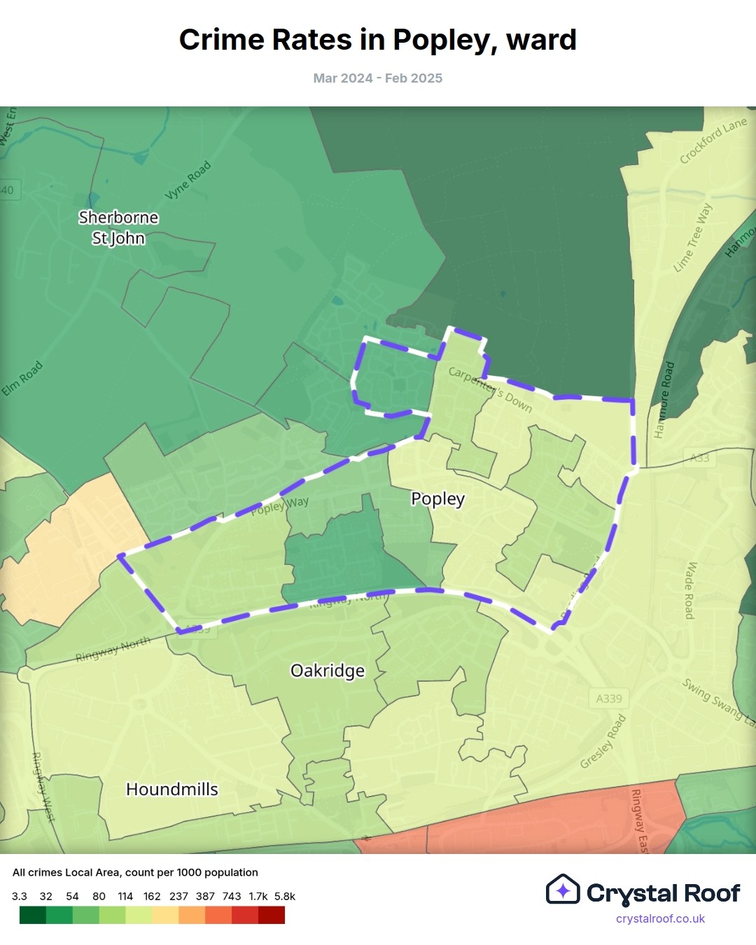 Popley, (ward) includes areas with the following crime ratings (see map):